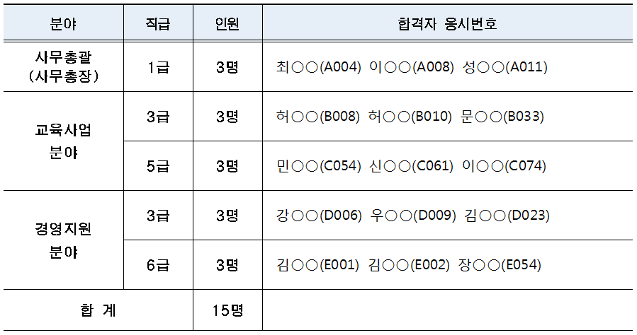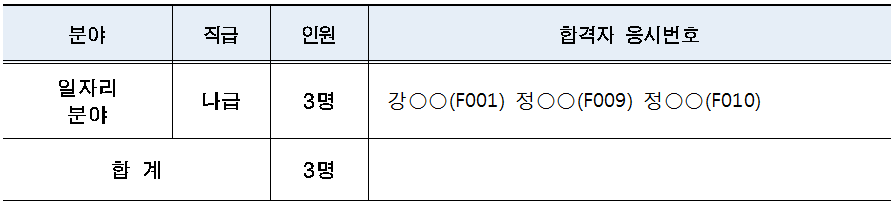 1. 필기시험 합격자(면접시험 대상자) : 18명