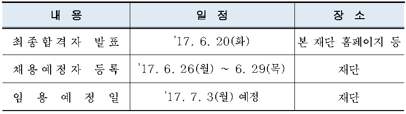 ※ 각 응시직급별 면접시험 시간은 합격자에 한하여 개별 통보(문자 안내)