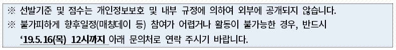 ○ 매칭데이 : 2019.5.24.(금) 10:00~18:00 (7시간)