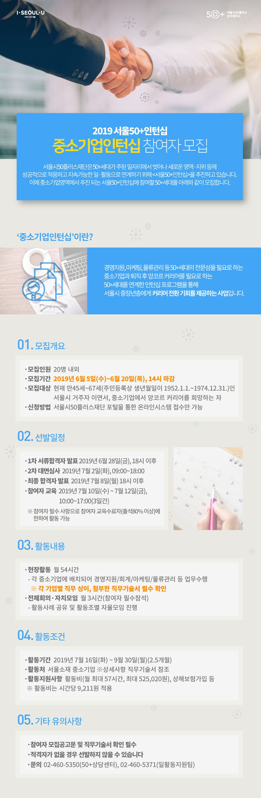 • 첨부파일표시 아이콘2019 서울50+인턴십 중소기업인턴십 참여자 모집공고문 .hwp