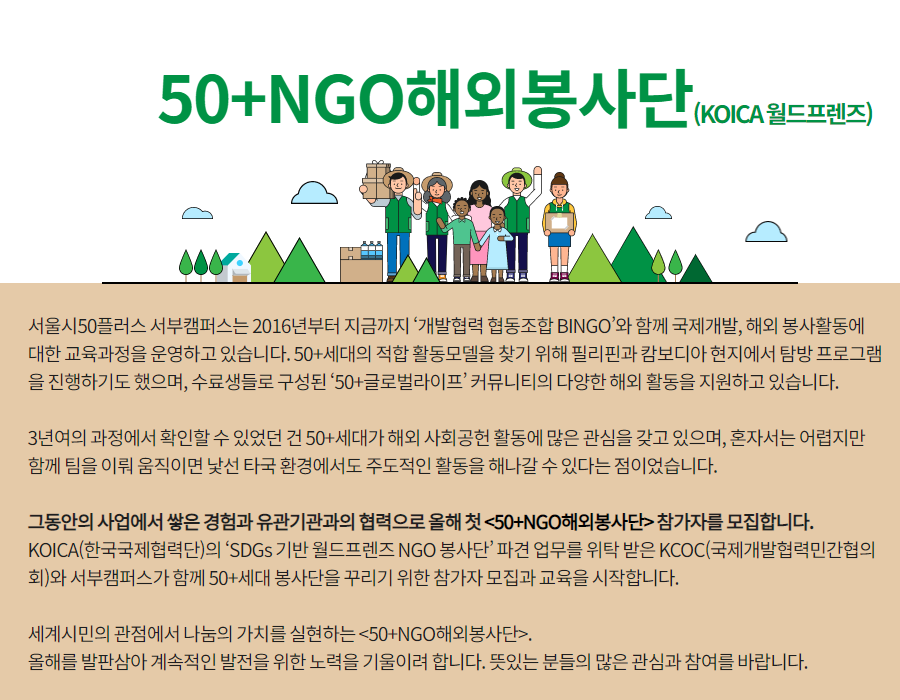 - 서울시50플러스 캠퍼스 국제개발, 해외활동 관련 교육과정 수료자