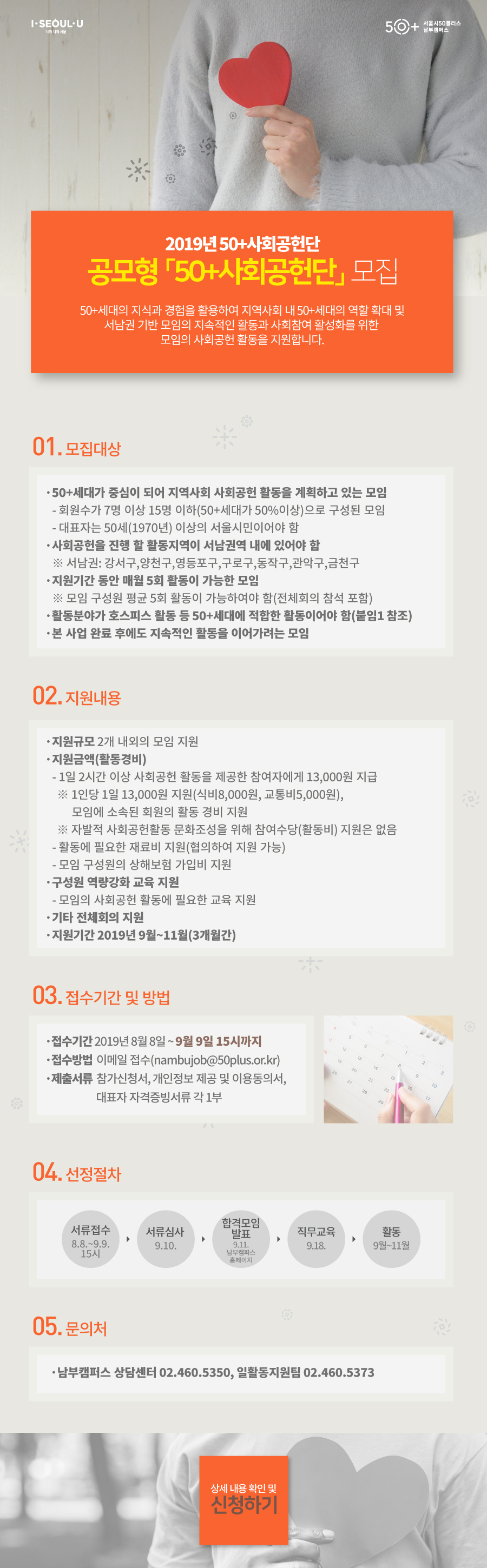 • 첨부파일표시 아이콘공고_95_(190808)_ 2019년 50+사회공헌단 모집공고_공모형(모집연장).hwp