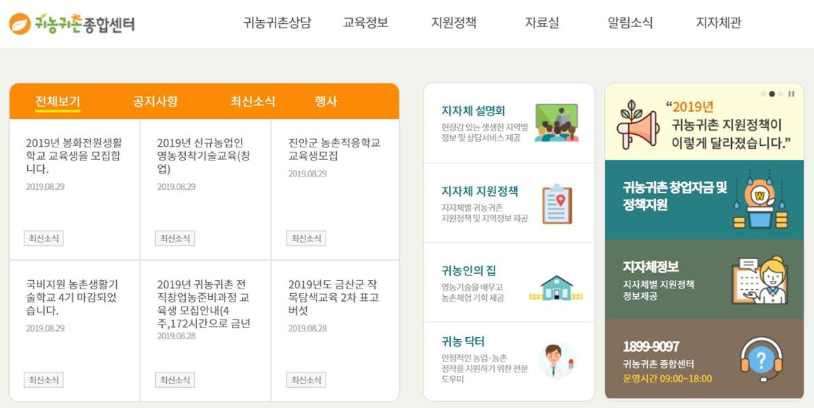 귀농귀촌종합센터 웹사이트