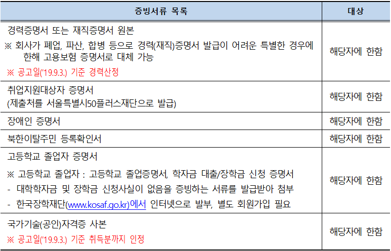 - 대상 : 서류전형 합격자(증빙서류 검증자)