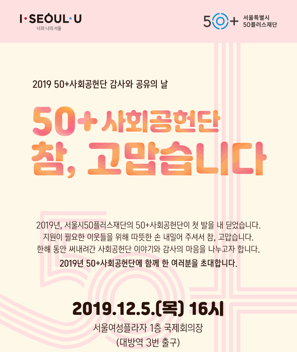 2019년 <50+사회공헌단 감사와 공유의 날>에 여러분을 초대합니다.