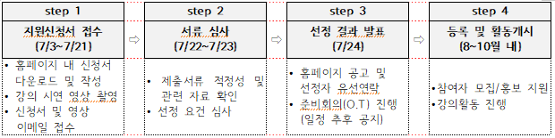 ※ 서류검토 후 강의시연이 필요할 경우 개별로 진행될 수 있습니다.