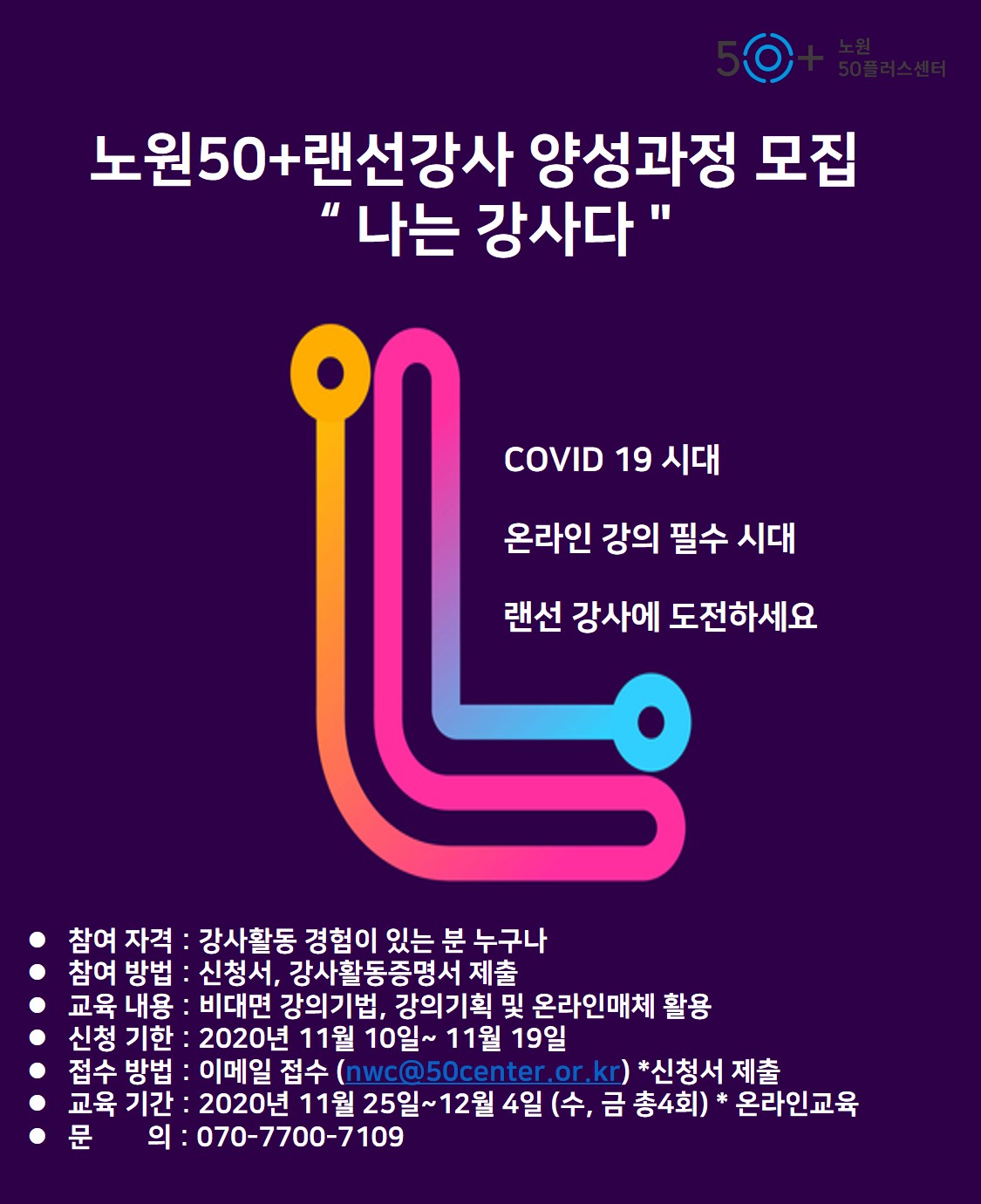 노원50플러스센터 50+랜선강사 양성과정 수강생 모집