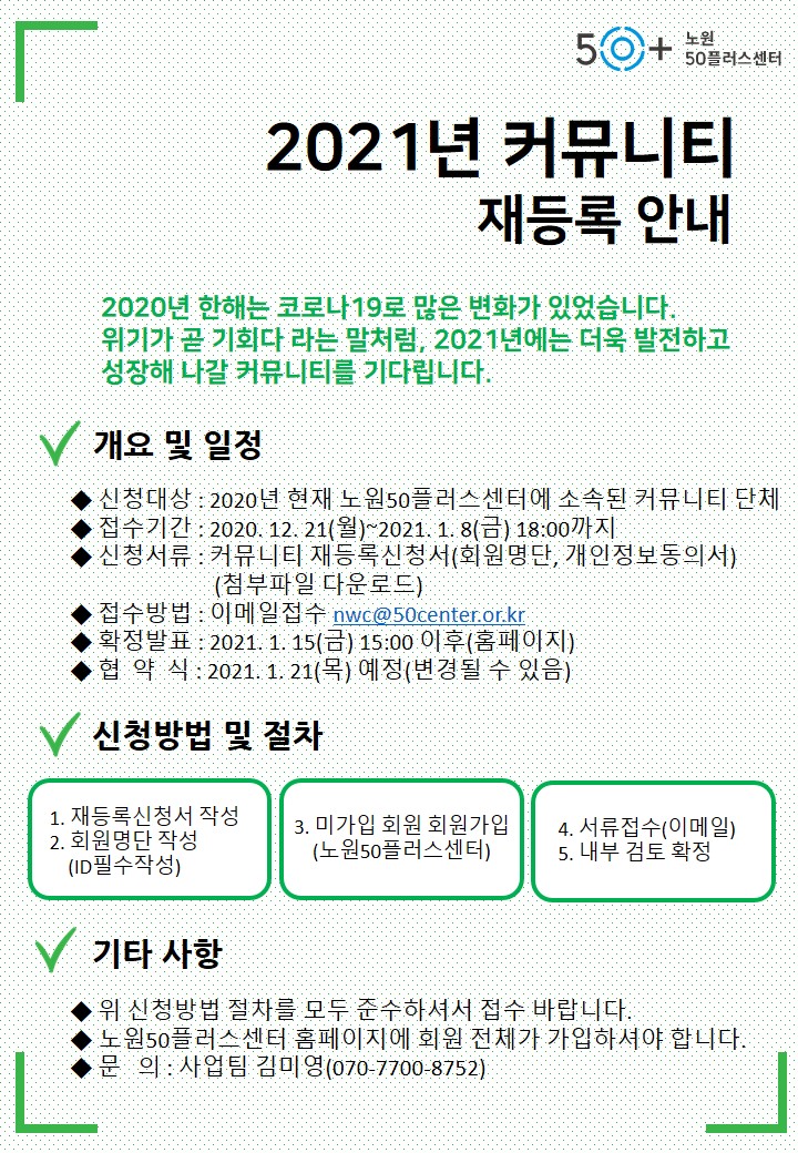 서울시 노원센터 | 2021년 커뮤니티 재등록 안내