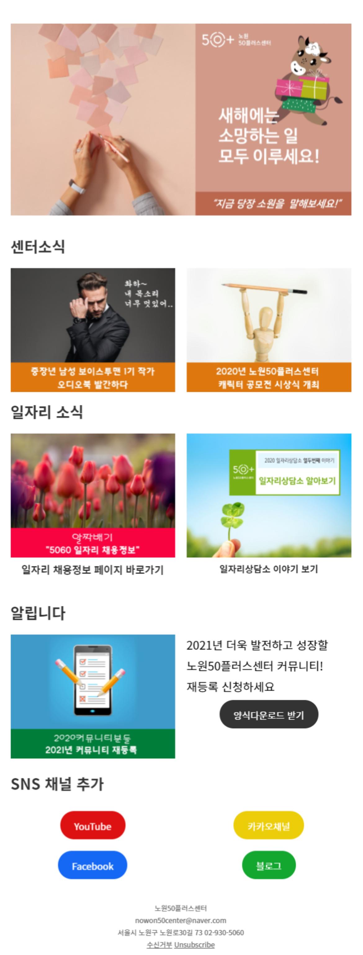 서울시 노원센터 | [노원50플러스센터 뉴스레터 2020년 12월] 한해 동안 감사합니다!