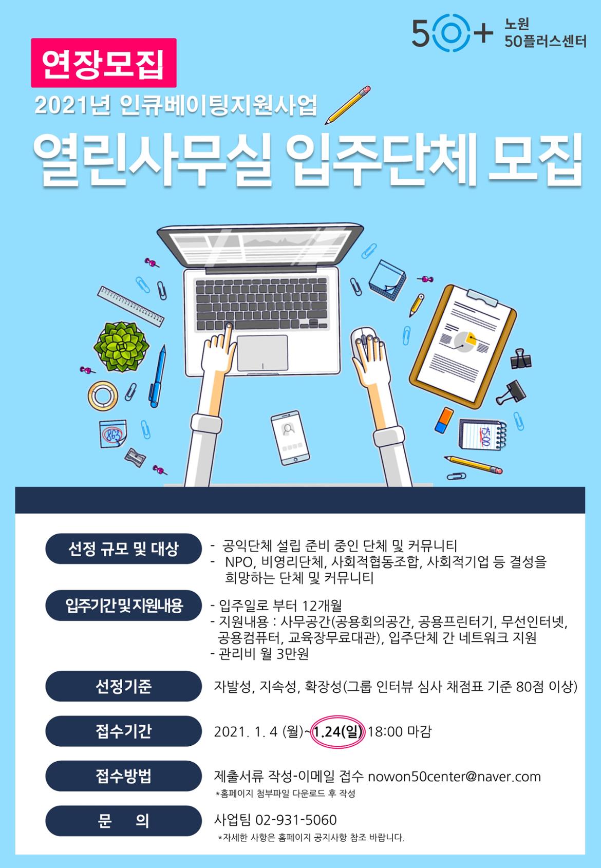 기간연장)2021년 인큐베이팅지원사업 – 열린사무실 입주단체 모집