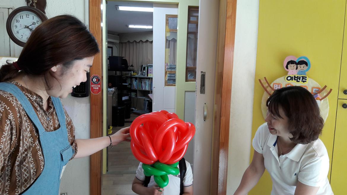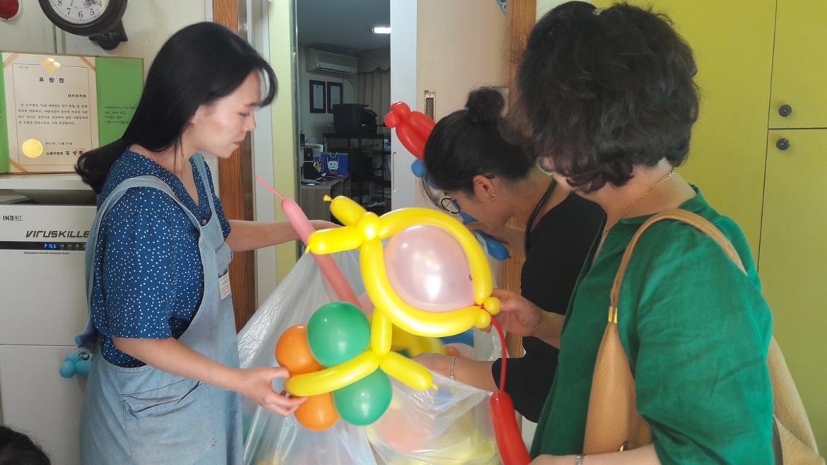 물고기, 나비, 꽃등 풍선을 받아 든 아이들은 함박웃음을 지으며 즐거워하는 모습을 보며