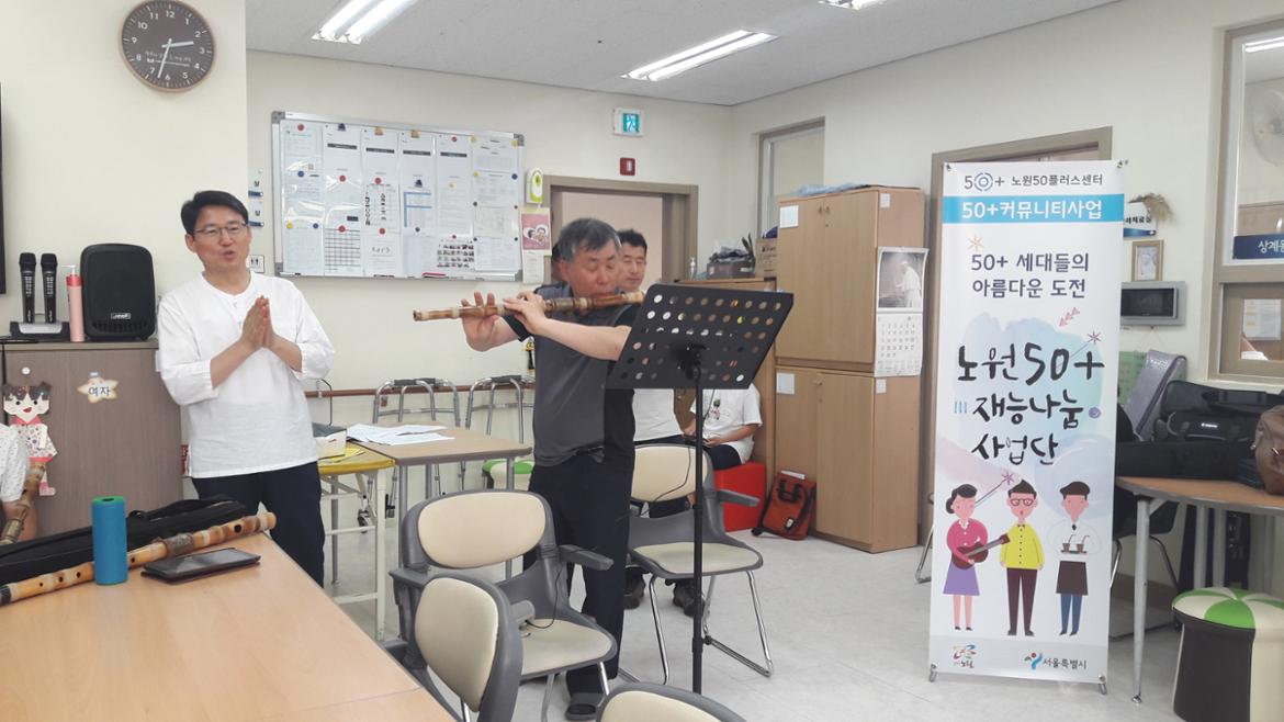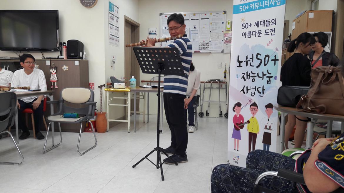 50+재능나눔사업단 대금연주팀이 어르신들을 찾아갔습니다.