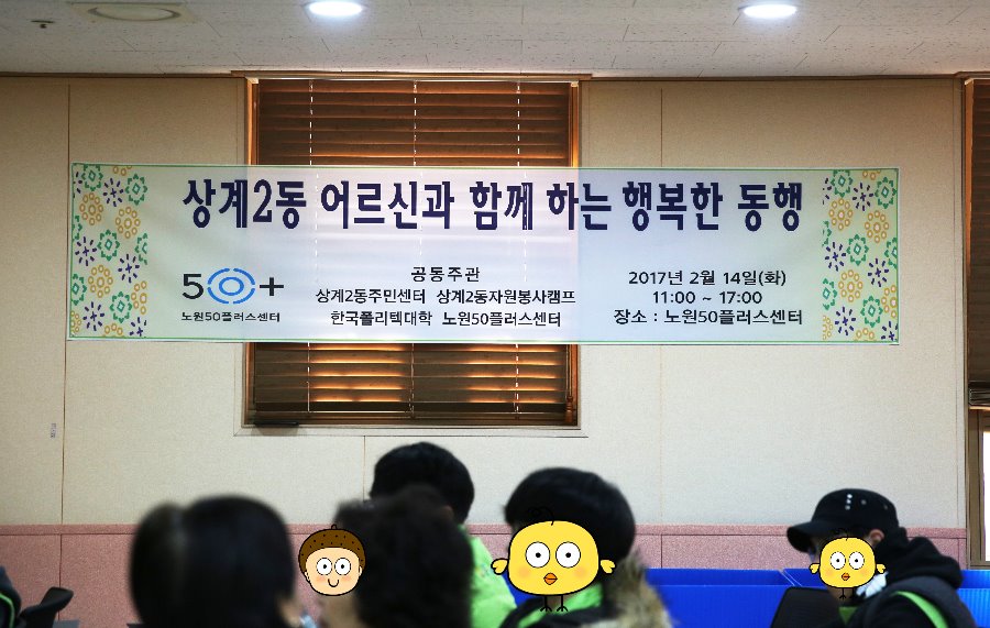 상계2동주민센터, 상계2동자원봉사캠프, 한국폴리텍대학생들과 노원50플러스센터가 뭉쳤습니다.