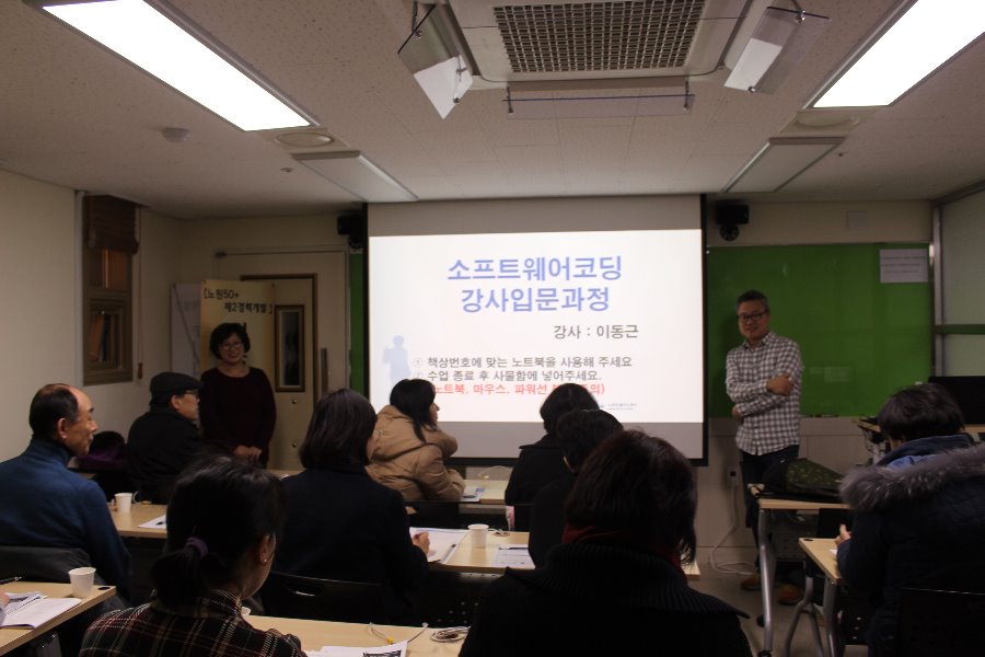 소프트웨어 코딩 강사 입문과정에 많은 관심 부탁드립니다. 함께 해주시는 노원50플러스세대 분들 감사합니다.