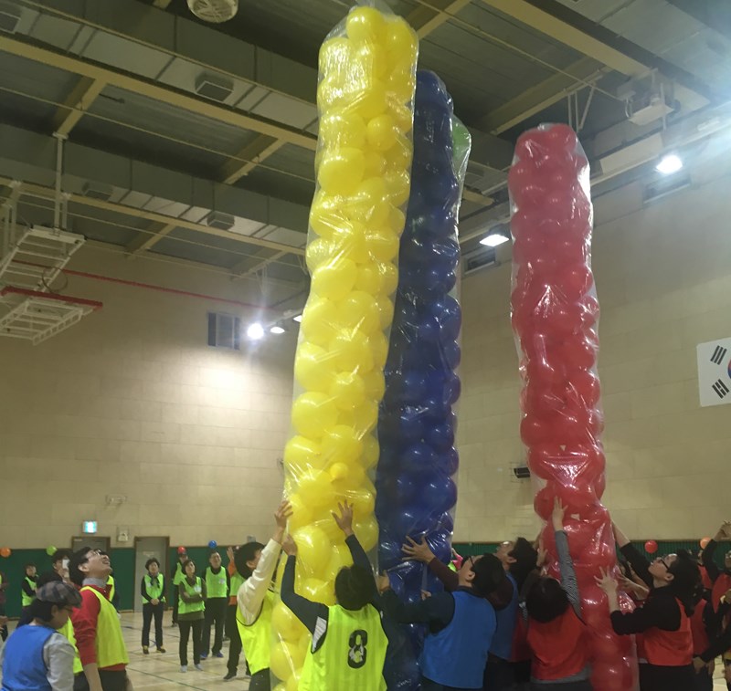 팀플 올림픽 7종경기(오륜릴레이, 25인 팀플릴레이, 지구를 지켜라, 42.195, 대형컵릴레이, 신발다트, 지압판 릴레이)와