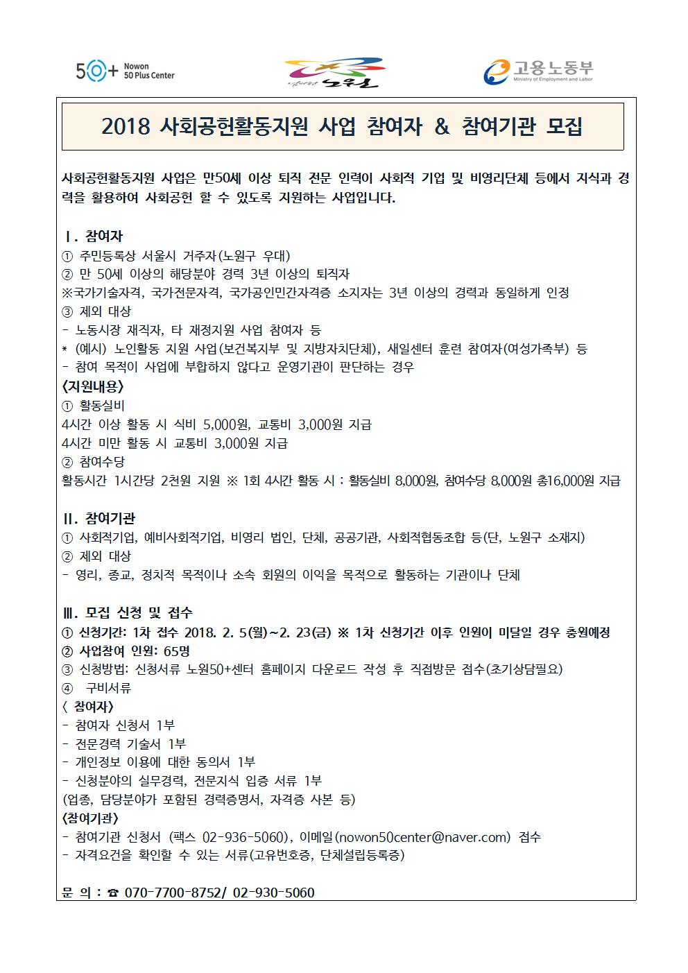 [모집] 2018년 사회공헌활동지원사업 참여자 및 참여기관 모집