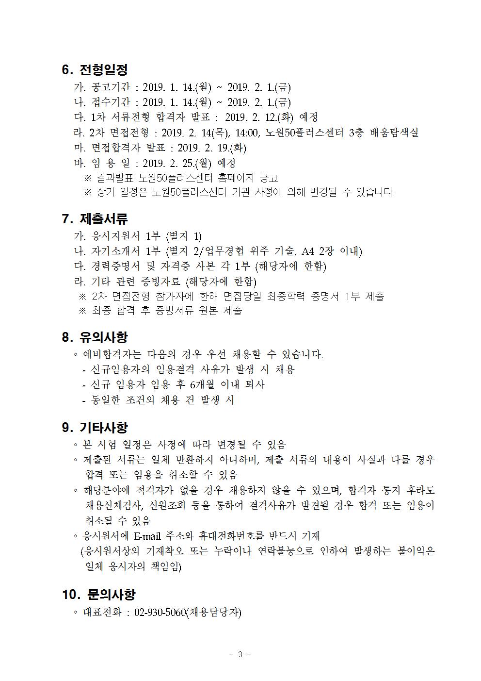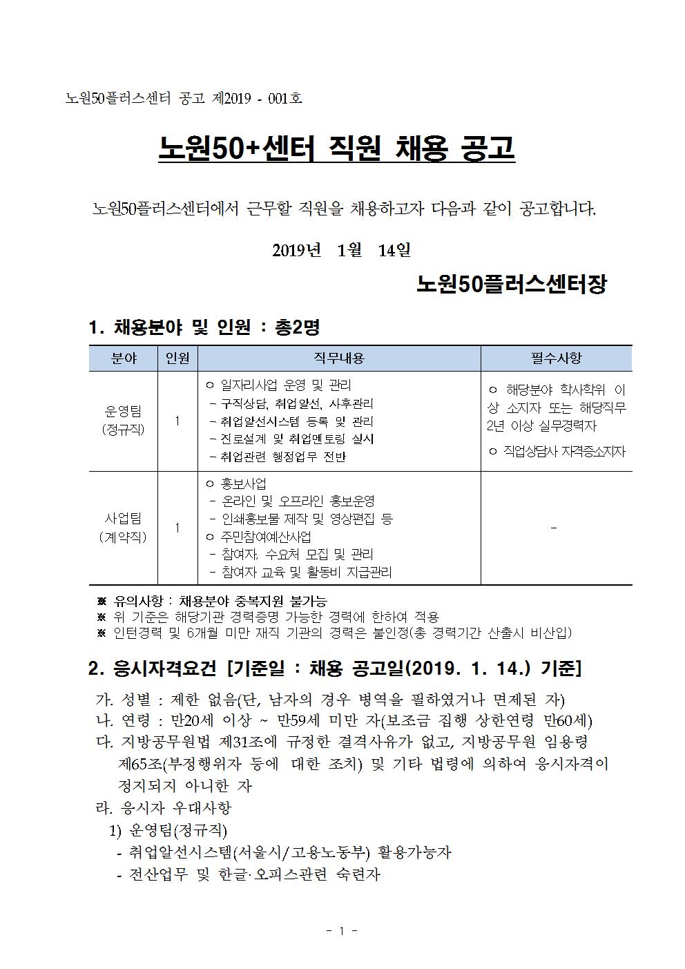 서울시 노원센터 | [채용]노원50플러스센터 직원 채용 공고
