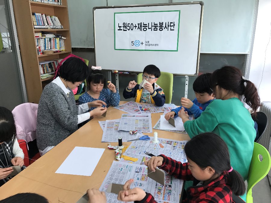 상계1동주민센터 2층에 위치한 '구립상계1동지역아동센터'로 직접 찾아가 초등학교 저학년 학생들을 위해  '가죽 교통카드 지갑'을 만드는 시간을 갖었습니다.