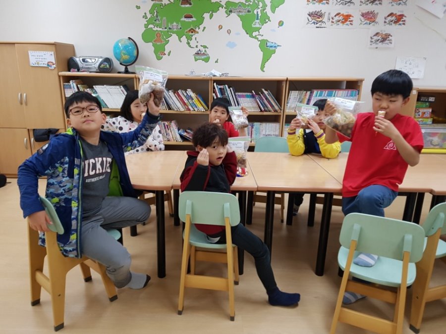 감자채 3가지를 만들어 중계 종합복지관 안에 있는