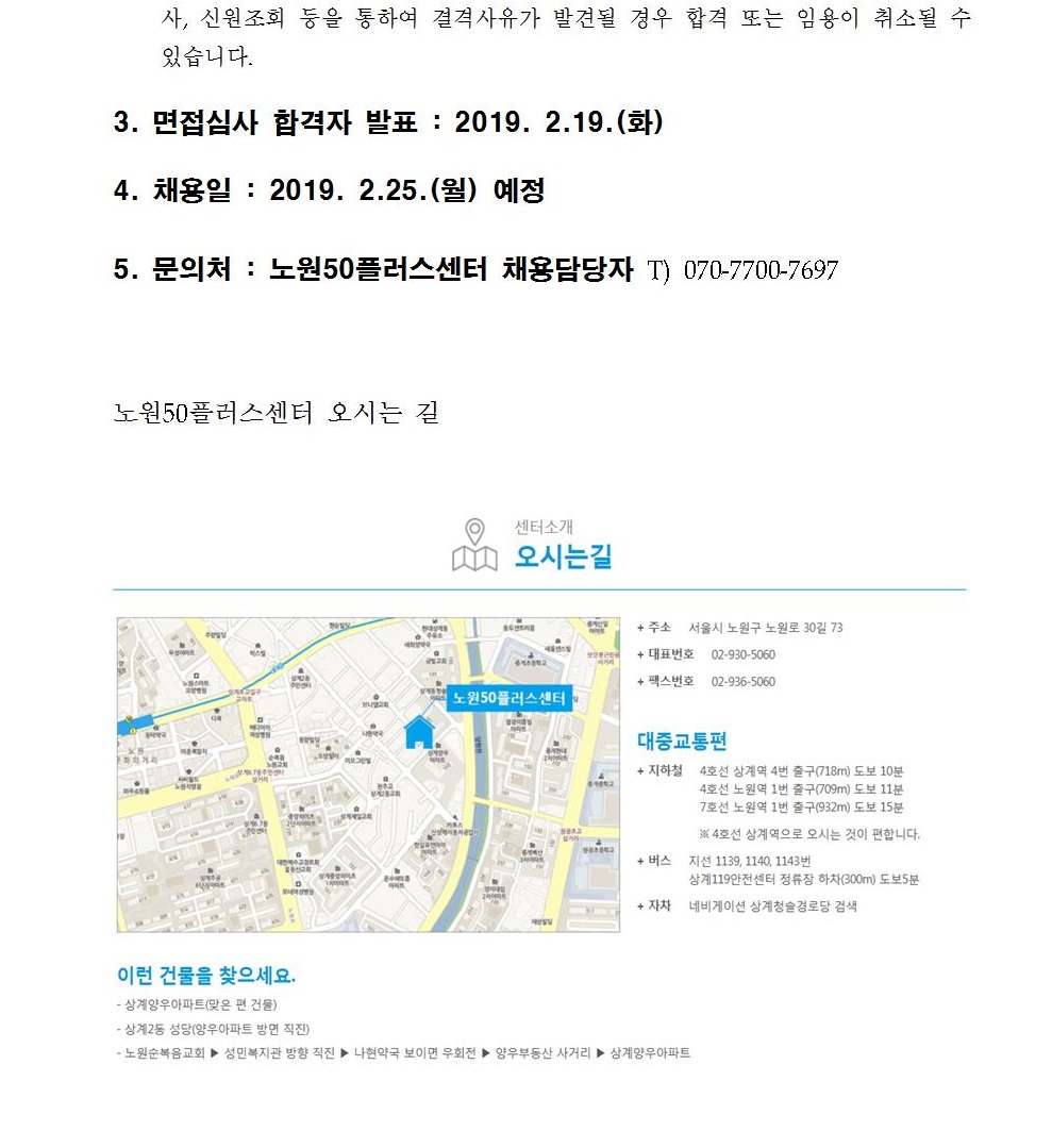[채용] 노원50플러스센터 직원채용 서류전형 합격자 및 면접일정 공고