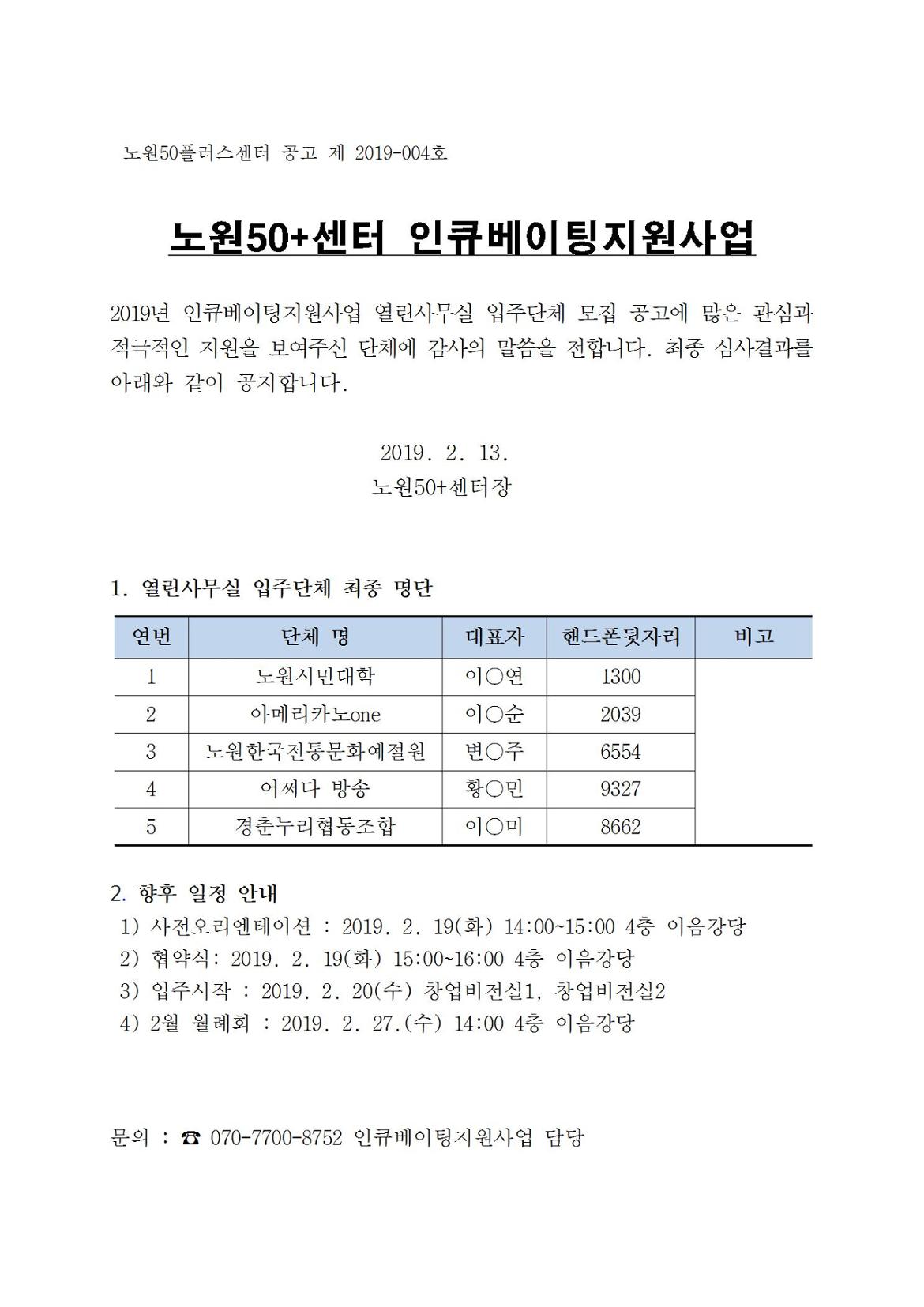 [발표] 2019년 인큐베이팅 지원사업 열린사무실 입주단체 최종발표