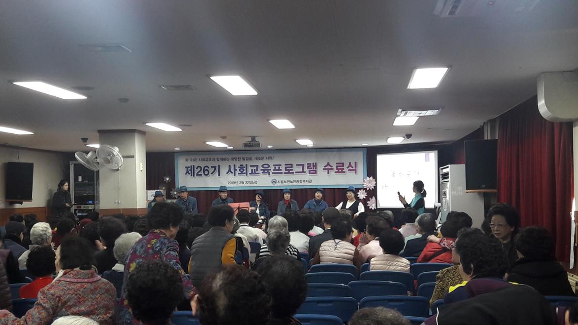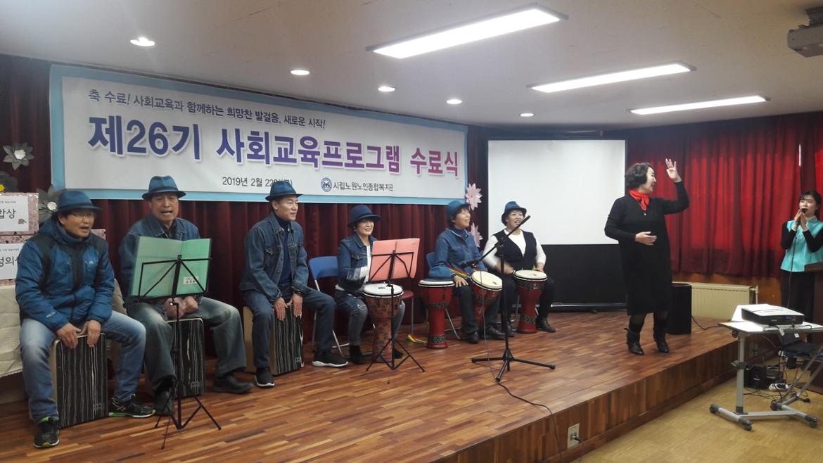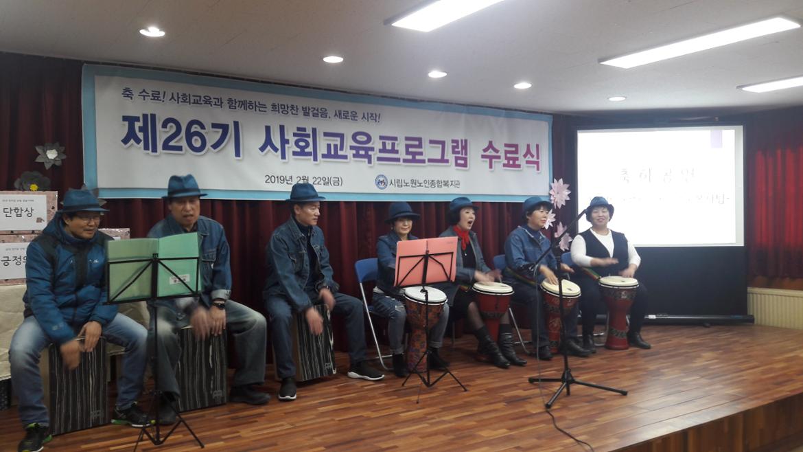 2019년 첫 번째 활동은 노원노인종합사회복지관 제 26기 사회교육프로그램 수료식에 젬베공연으로 시작하였습니다.