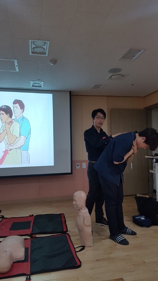 6.19(월) 오전에는 직원들의 심폐소생교육을 실시하였습니다.