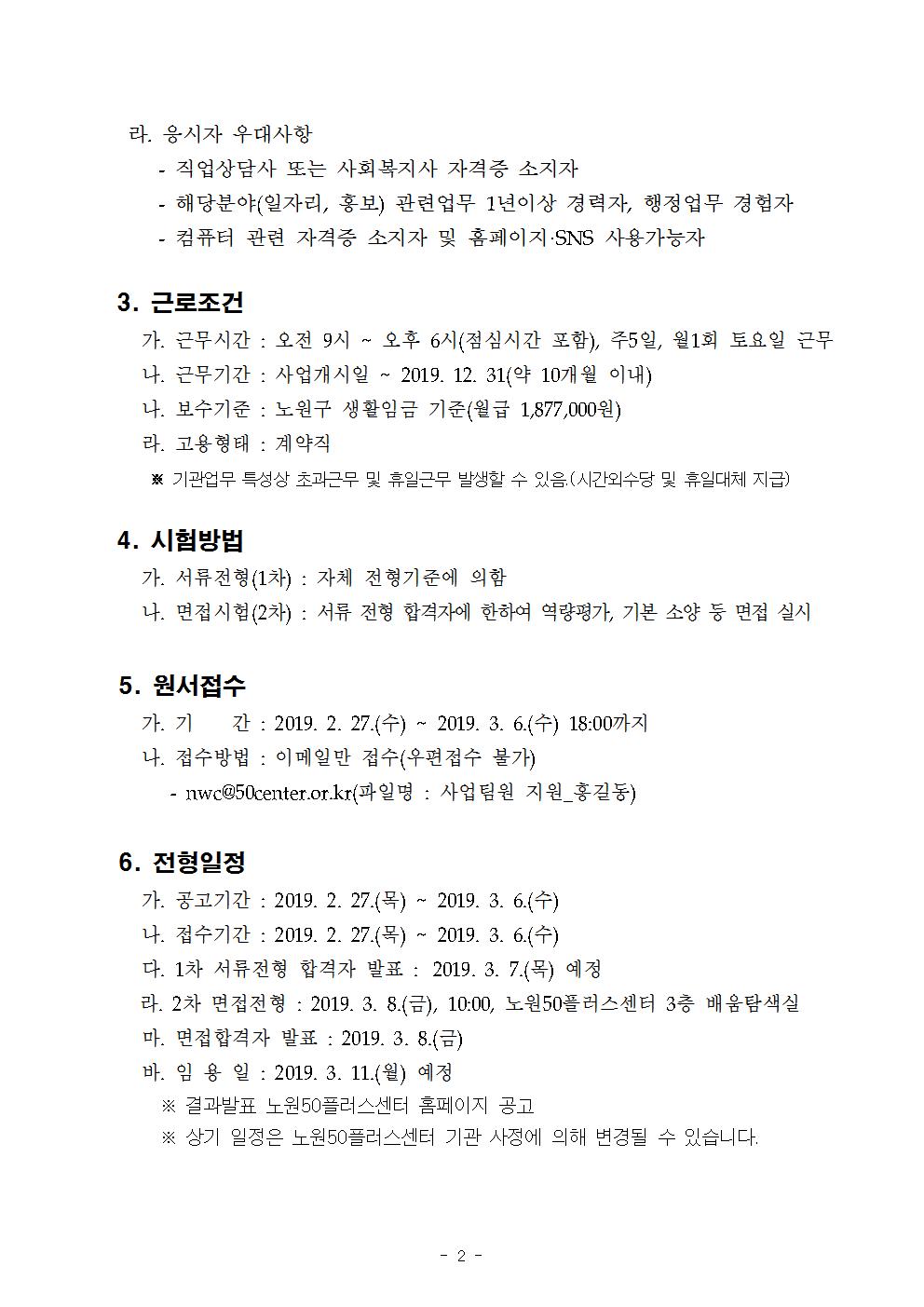 [긴급채용] 노원50플러스센터 직원 채용 공고