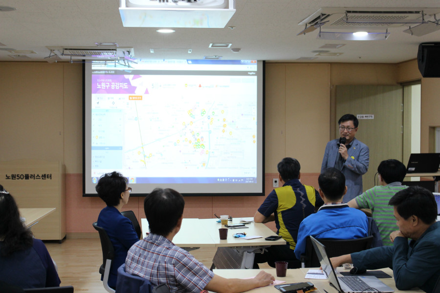 공감지도 만들기(커뮤니티매핑)은 사회구성원들이 지역의 필요와 이슈에 따른 주제를 선정해 현장에서 정보를 수집하고 이를 인터넷 지도 위에 바로 표기해 지리정보를 스스로 생산하고 공유하는 시스템이다. 노원50플러스센터는 노원구 지역사회 편의시설 조사를 위해 50+세대(중장년층) 노원구 공감지도만들기 사업을 진행 중에 있습니다. 현재 총 7회의 교육과정을 끝냈으며, 11월 30일까지 16회의 현장실습과 조사활동으로 노원구 공감지도를 만들게 됩니다.