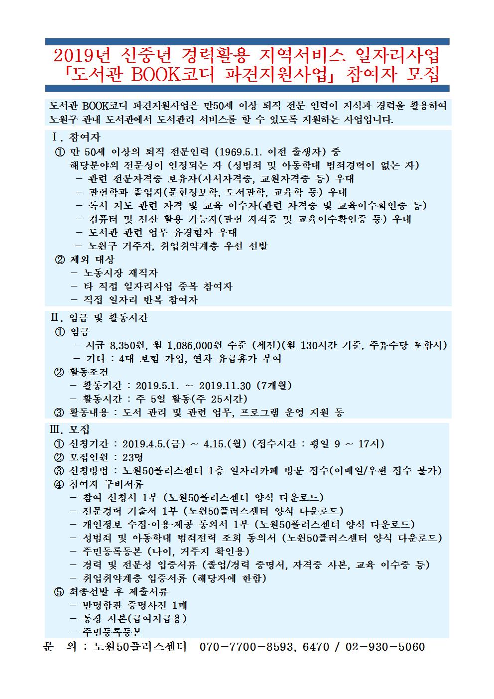 도서관 북코디 참여자 모집 공고문 및 제출서류_노원50플러스센터.hwp