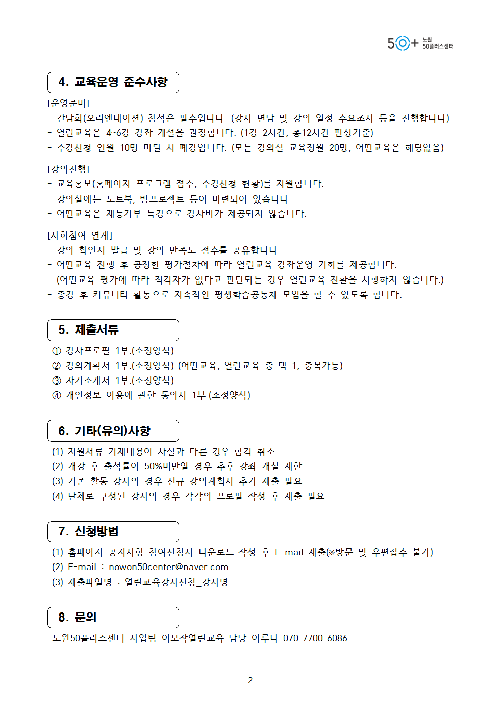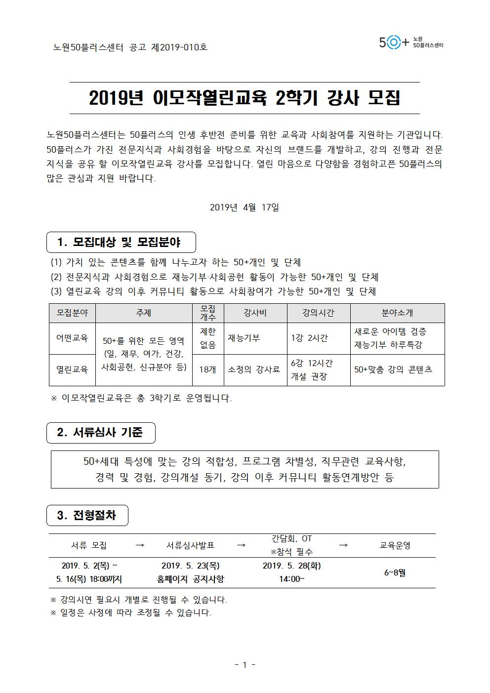 서울시 노원센터 | [모집] 2019 이모작열린교육 2학기 강사 모집