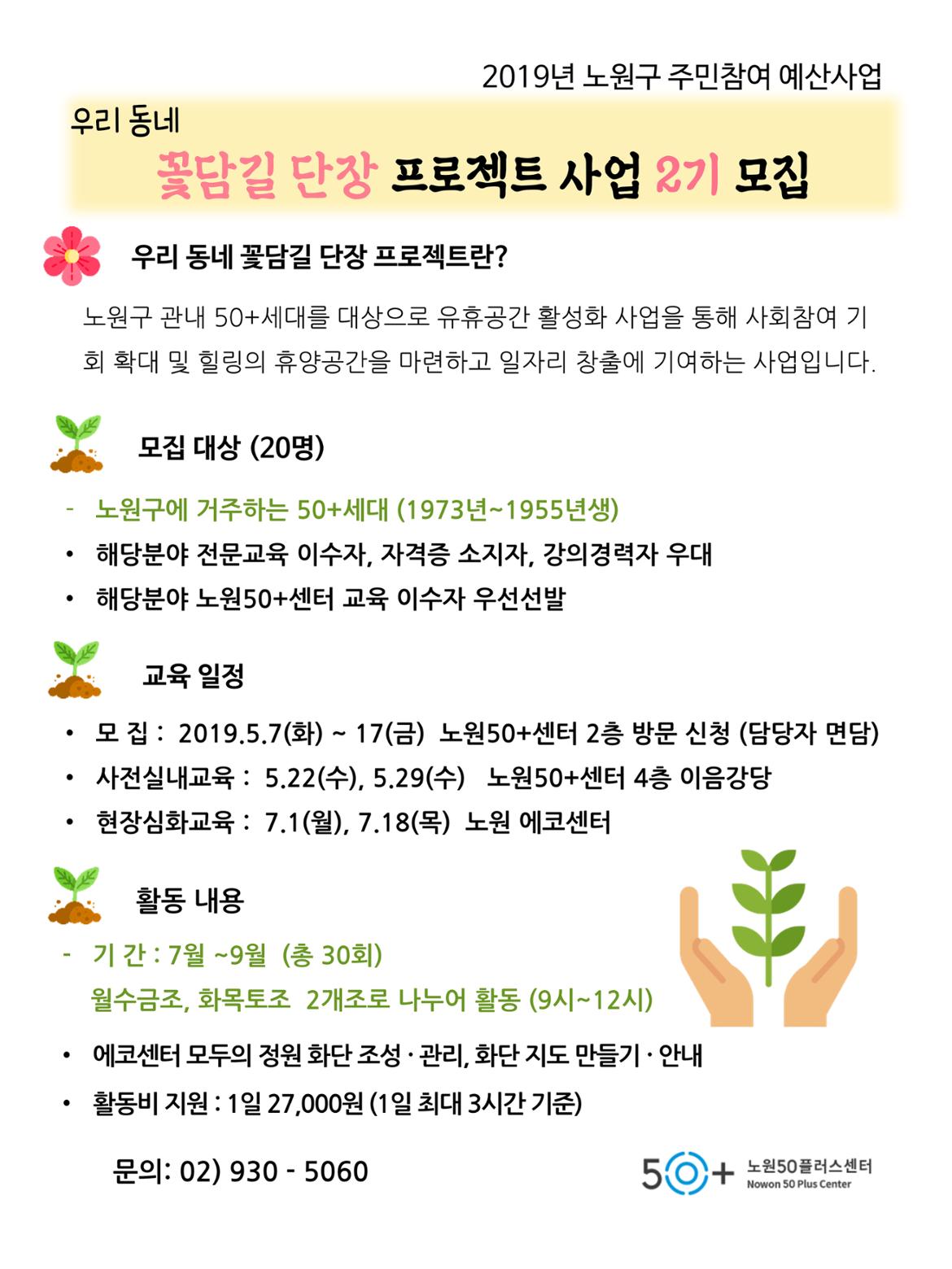 - 2기 모집(20명) : 2019.05.07(화) ~ 17(금)