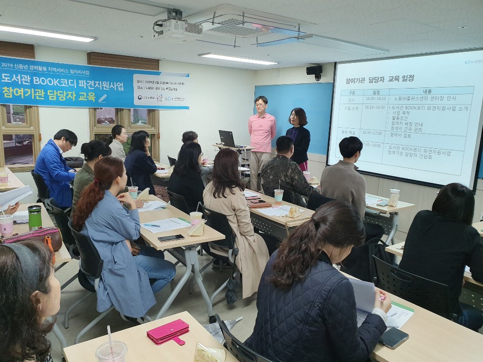 도서관 BOOK코디 파견지원사업은 50+세대에게 사회서비스형 일자리를 제공하여