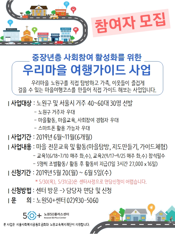 서울시 노원센터 | [모집] '중장년층 사회참여 활성화를 위한 우리마을 여행가이드 사업 참여자' 모집