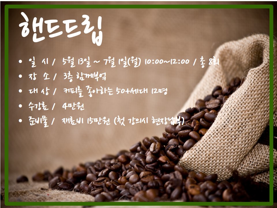 커피와 관련된 강좌와 요리강좌가 다양하게 진행되었습니다.