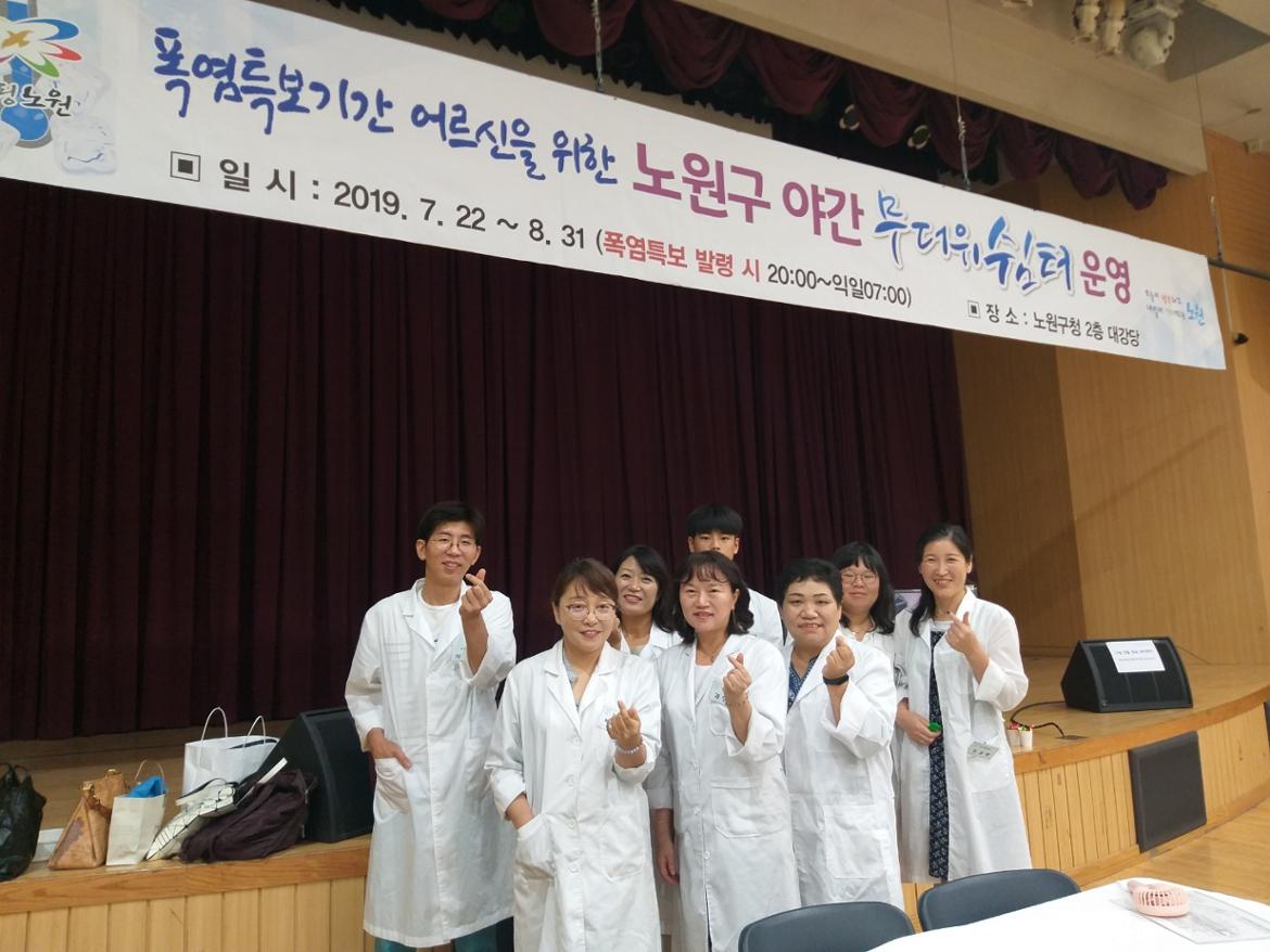 폭염특보기간에  노원구청 대강당에  마련된  어르신들을  위한