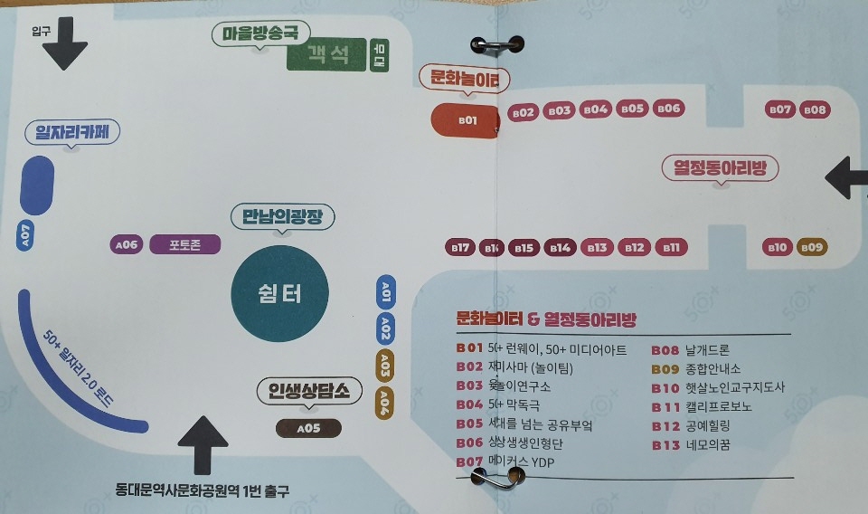 만남의 광장, 인생상담소, 일자리카페, 마을방송국, 문화놀이터, 열정동아리방으로 나누어 행사를 진행했습니다.