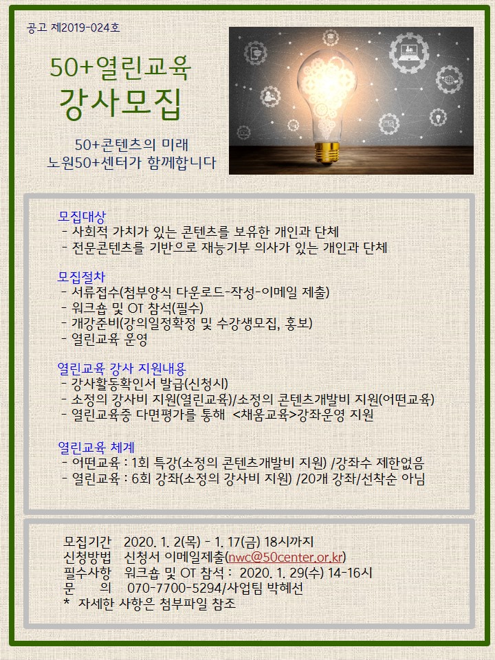 2020년 이모작열린교육 1학기 강사모집