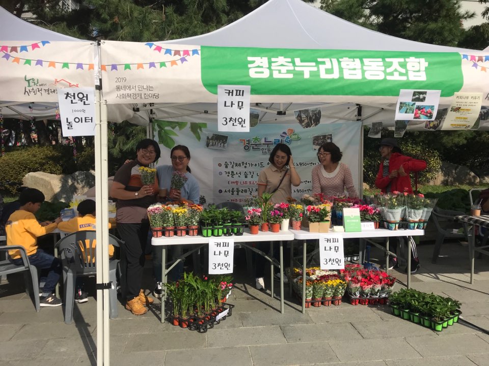 내실을 다지기 위해 협동조합 교육을 지속하며 <노원사회적경제한마당>에 참가하여 지역주민들과 자연을