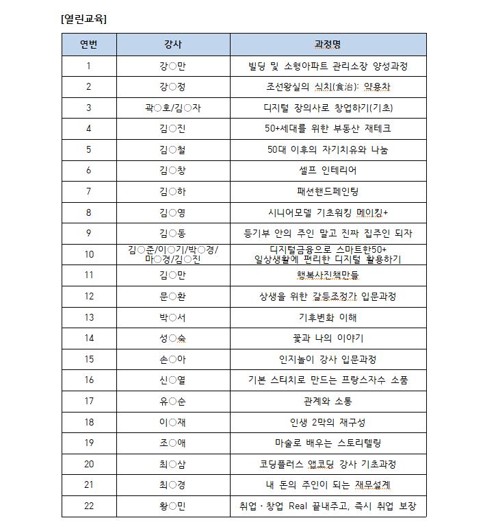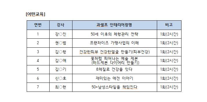 서울시 노원센터 | [발표]50+이모작열린교육 1학기 강사 선정결과