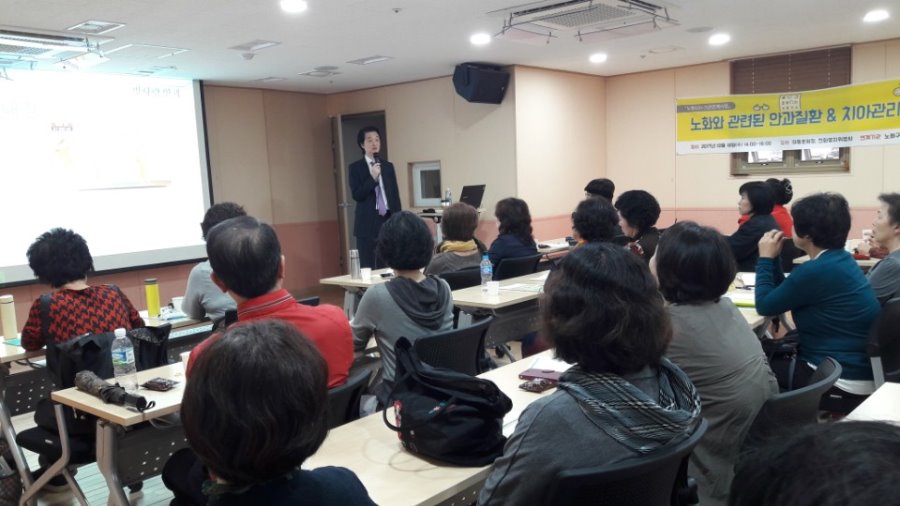 이번 건강강의 주제는 안과질환과 치아관리에 대한 내용이였습니다.