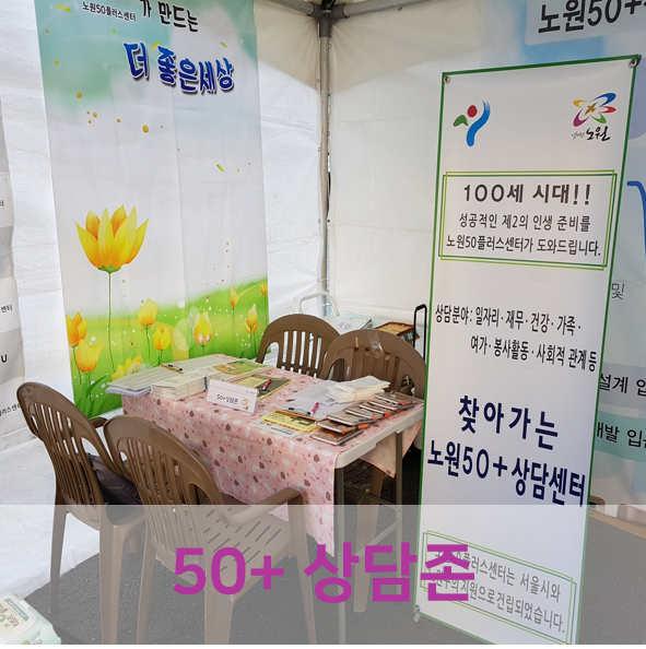 분주하게 노원50플러스센터의 식구들은 행사부스를 정리하고 꾸몄습니다.