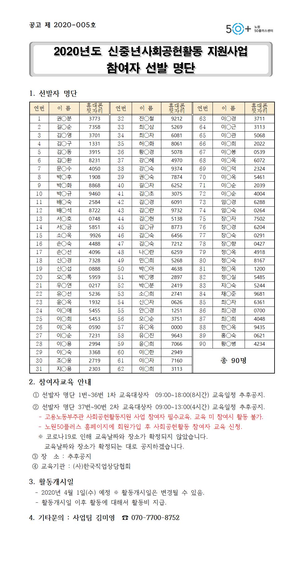[발표] 2020년 사회공헌활동지원사업 참여자 선발 결과