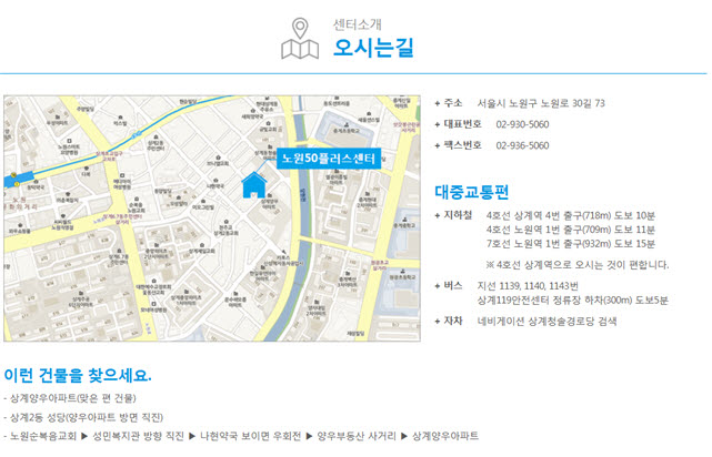 노원50플러스센터 (우 01697 )서울시 노원구 노원로 30길 73 사업자등록번호 : 305-82-86739 대표자 : 장부경