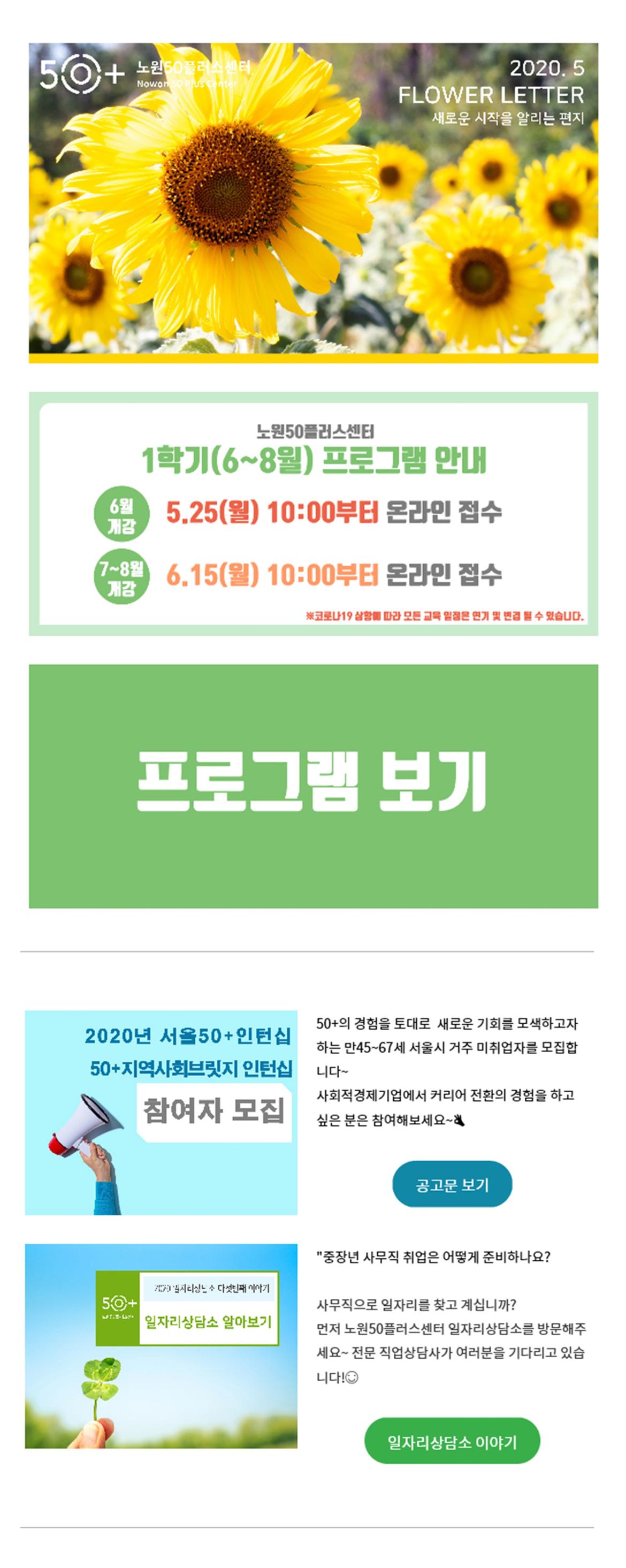 [노원50플러스센터 뉴스레터 2020년 5월] 2020년 1학기(6~8월) 프로그램 안내