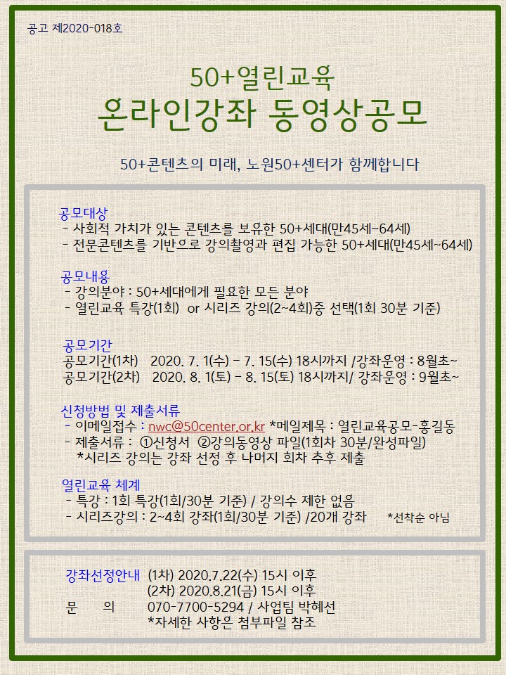 서울시 노원센터 | [공모]50+열린교육 온라인강좌 동영상공모