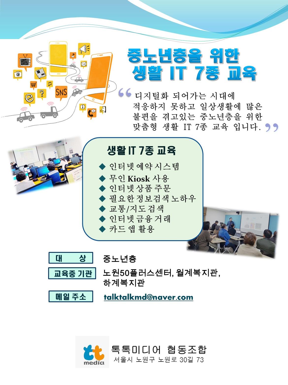 노년층을 위한 생활 IT 7종 교육을 실시하고 있습니다.