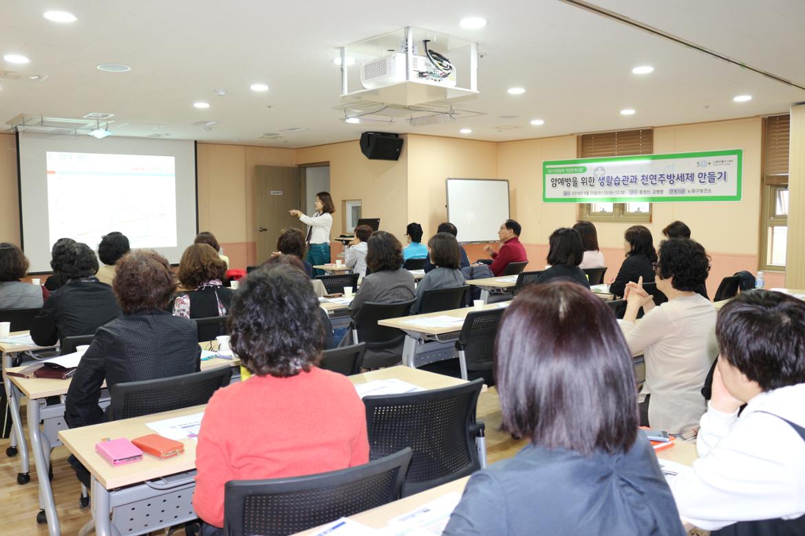암 예방 생활습관에 대해 알아보고 실천방법에 대한 강의를 함께 하였습니다.