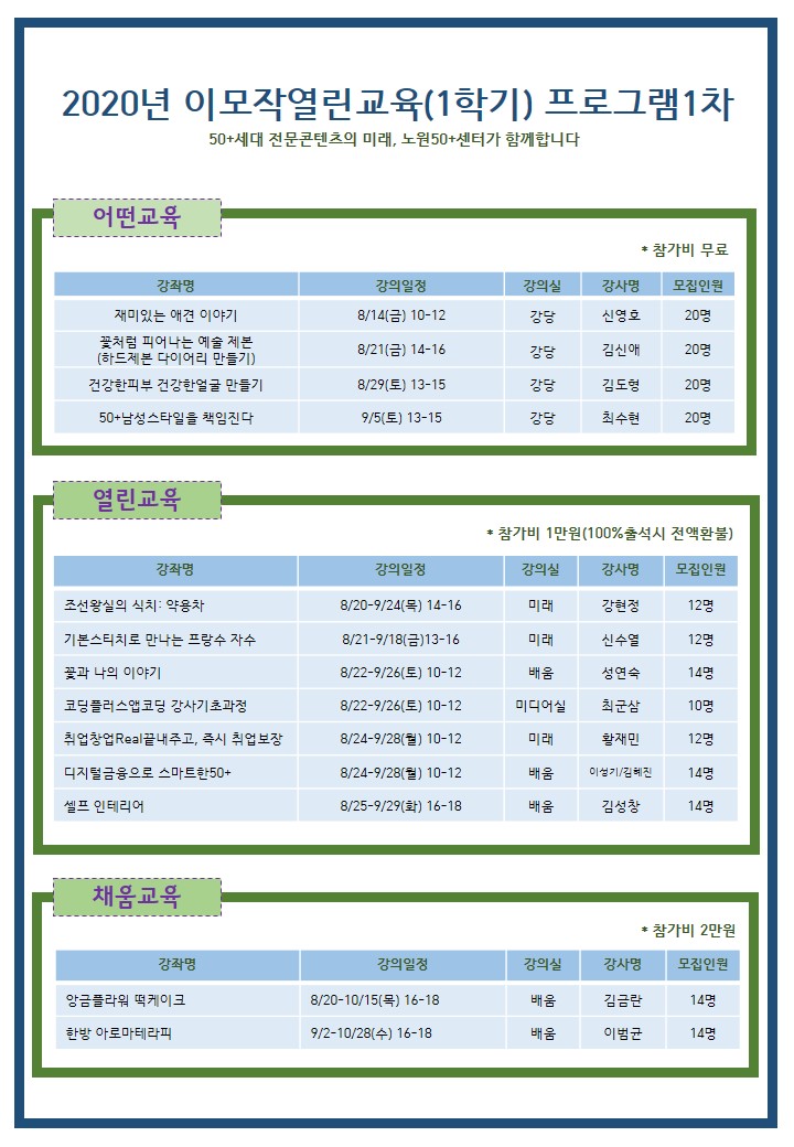 서울시 노원센터 | [모집]2020년 이모작열린교육(1학기)프로그램 1차