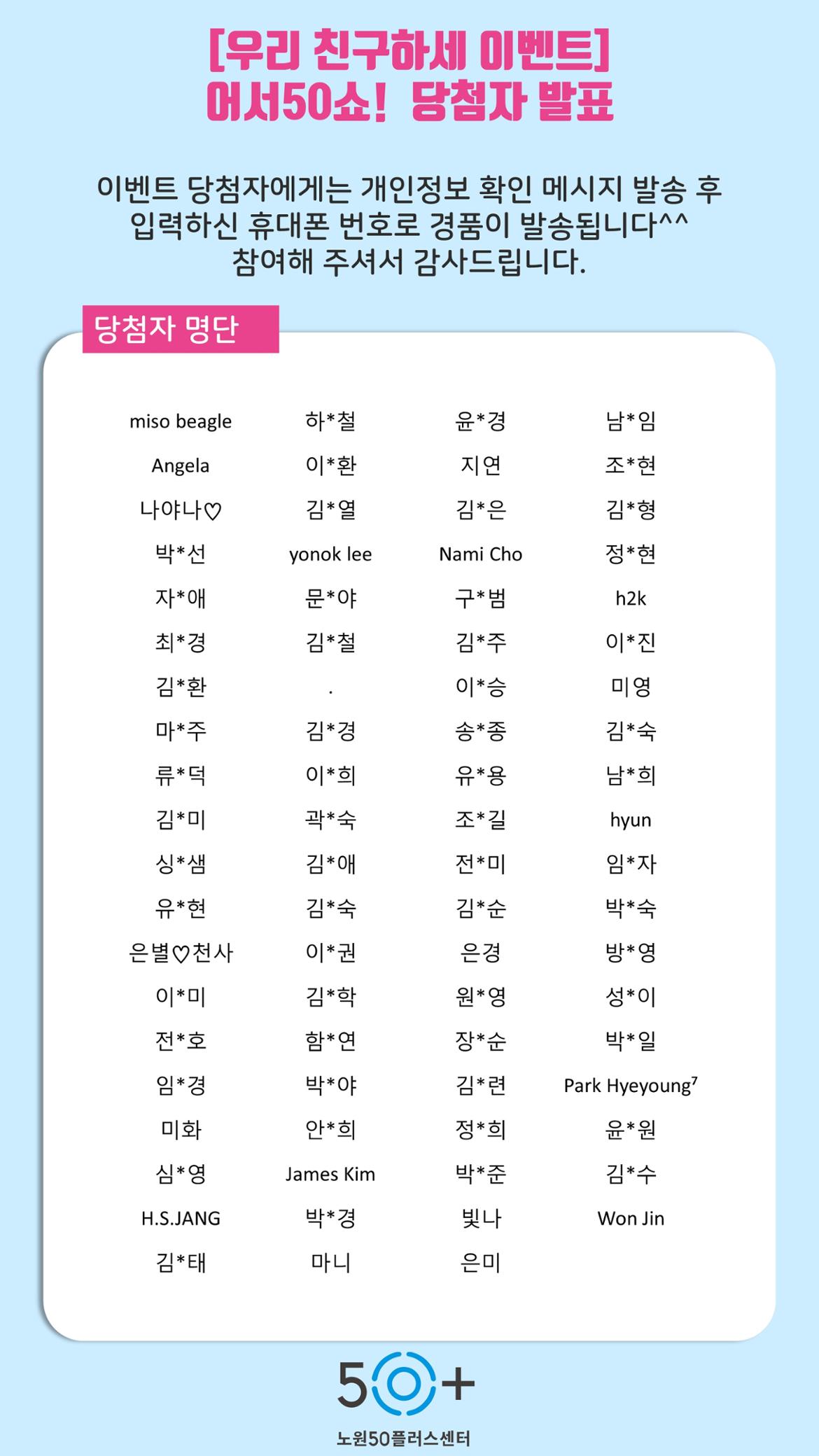 서울시 노원센터 | [우리 친구하세 이벤트] 어서50쇼! 당첨자 발표